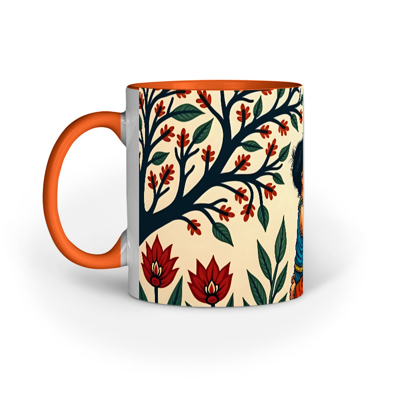 Matruvta encapsulates the quiet magic of motherhood — a tender gaze, tiny hands clutching a sari, and love that needs no words. This accent mug blends the emotional gravity of a mother-child moment with the ornamental beauty of Madhubani art, framed by branches and floral details. Its soothing earthy tones bring comfort, while the red interior symbolizes warmth, love, and protection. Whether it’s a morning ritual or an evening wind-down, this mug holds more than just your drink — it holds emotion. Ideal for Mother's Day or simply as a heart-touching reminder of nurturing bonds.